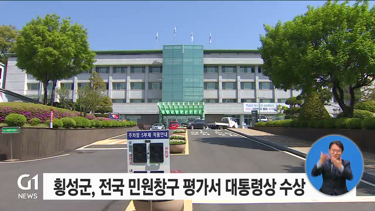 횡성군이 행정안전부가 주관한 '전국 원스톱방문 민원창구 우수기관 평가'에서 대통령상을 수상했습니다.