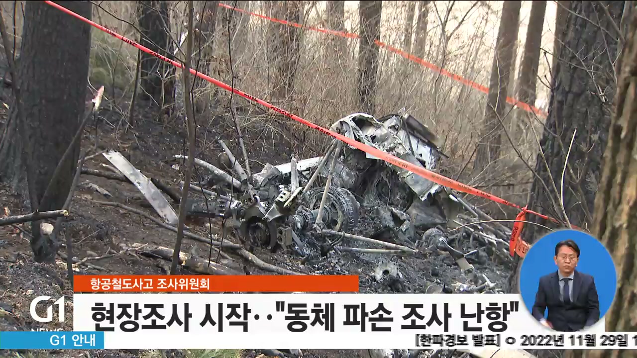 현장 조사를 거쳐 정밀 감식을 벌일 예정인데, 동체가 대부분 소실돼 조사에 어려움을 겪고 있습니다.