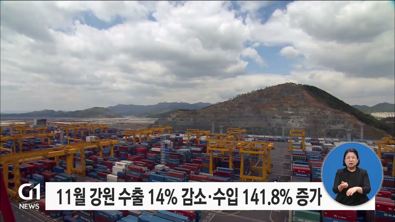 11월 강원 수출 14% 감소·수입 141.8% 증가
