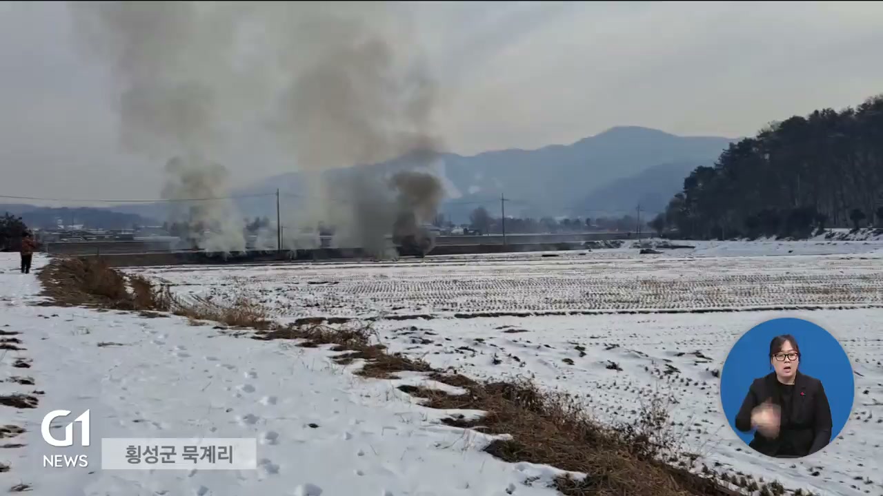 공군 소속 KA-1 1대가 횡성읍 묵계리의 한 농경지에 추락한 건 어제 오전 11시 40분쯤.
