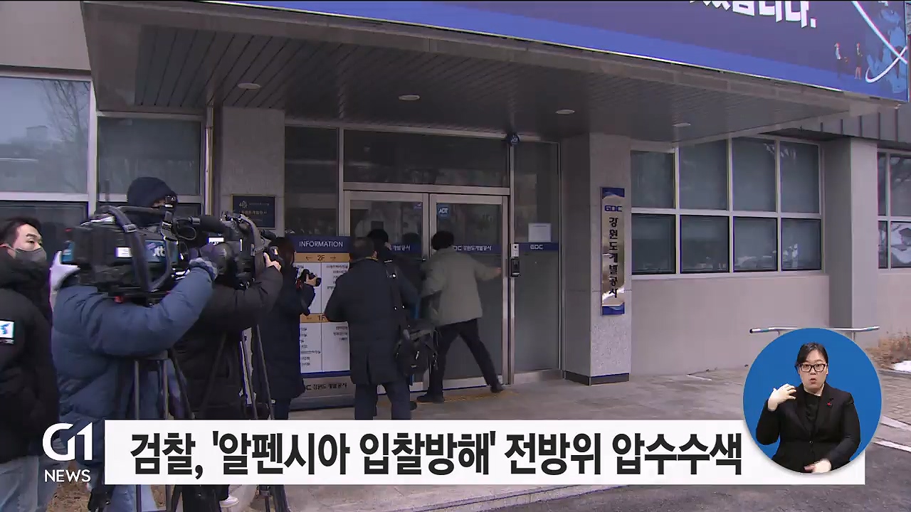 검찰이 알펜시아 리조트 입찰 방해 의혹과 관련해 최문순 전 도지사의 주거지와 강원도개발공사 등을 압수수색했습니다.