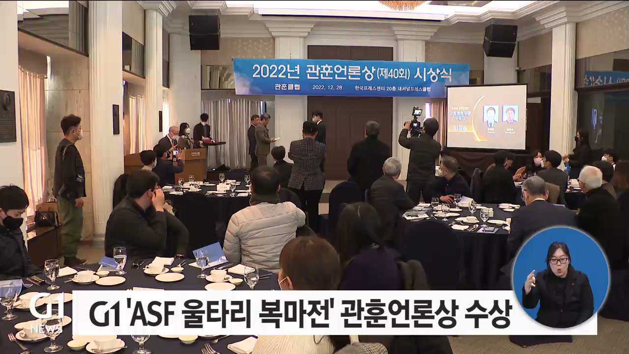 G1방송이 기획보도한 'ASF 울타리 복마전: 2천억은 어디로 갔나'가 제40회 관훈언론상 사회변화 부문상을 수상했습니다.