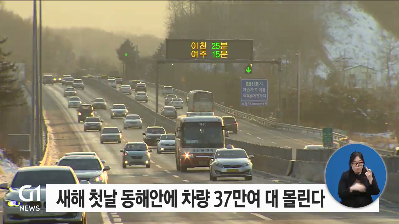 한국도로공사 강원본부는 오는 31일부터 내년 1월 1일에 강원 동해안을 방문하는 하루 평균 고속도로 교통량은 최근 주말보다 1.6% 증가한 37만 7천여 대가 될 것으로 예측했습니다.