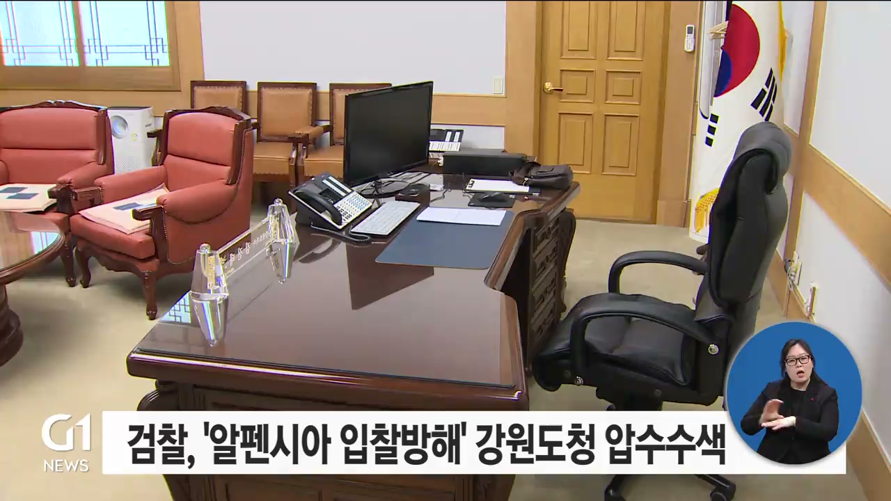 검찰이 알펜시아 리조트 입찰방해 의혹과 관련해 강원도지사실과 비서실 등을 압수수색했습니다.