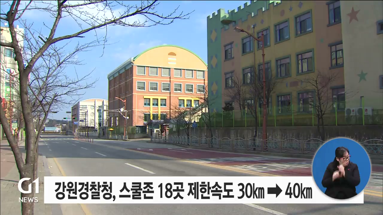 강원경찰청이 교통량과 지역 여론 등을 종합적으로 검토해 보행자 사고 위험이 낮은 어린이보호구역 18곳의 제한속도를 시속 40km로 상향한다고 밝혔습니다.