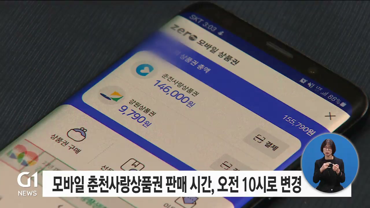 춘천시는 매월 1일 오전 9시부터 판매됐던 모바일 춘천사랑상품권 판매 시간을, 접속자 폭주 등으로 인한 서버 불안정 해소를 위해 오전 10시부터로 변경한다고 밝혔습니다.