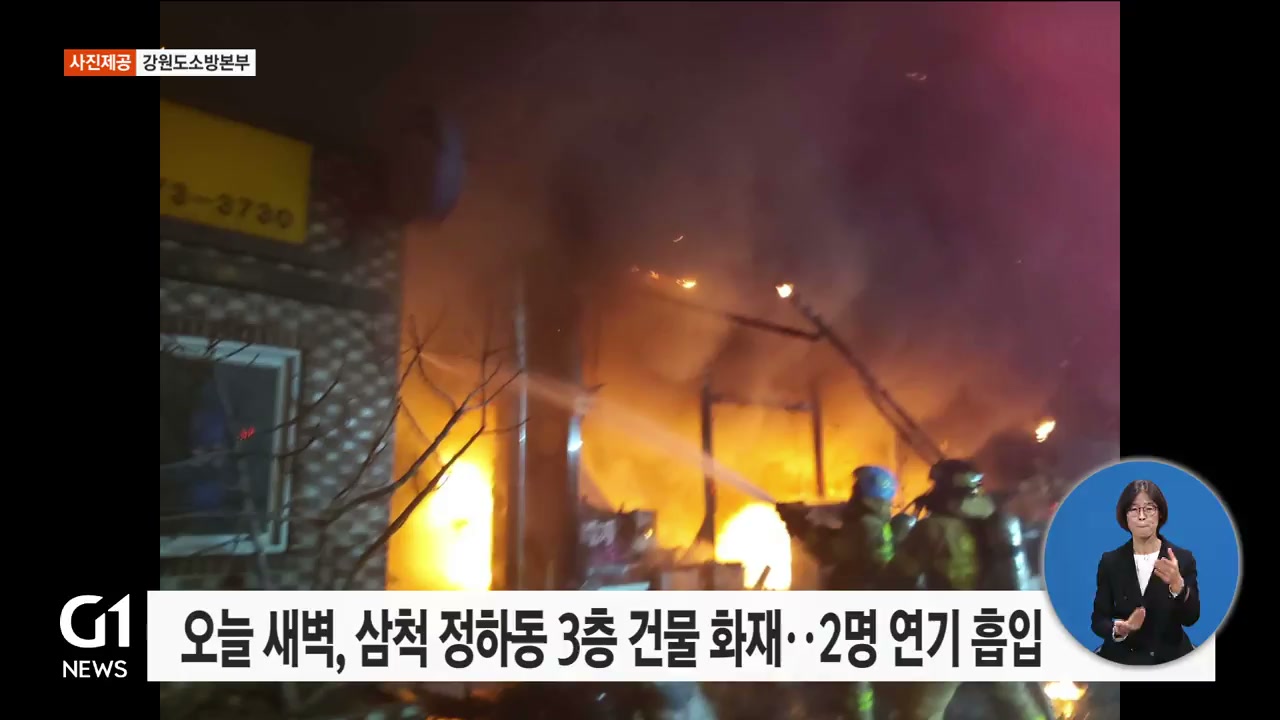 삼척 정하동 3층 건물 화재..2명 연기흡입