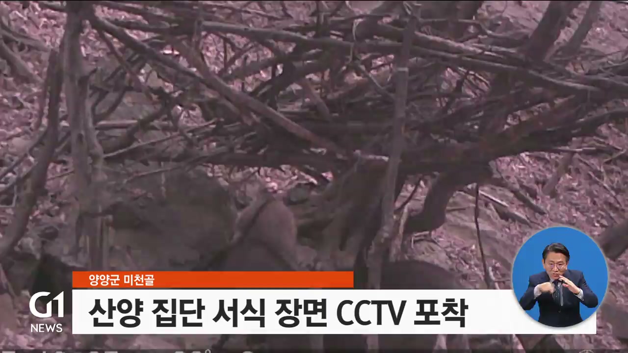 양양의 한 야산에서 천연기념물, 산양이 집단 서식하는 모습이 카메라에 잡혔습니다.