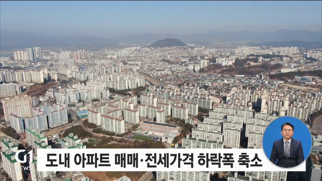 도내 아파트 매매와 전세값의 하락 폭이 줄어들고 있는 것으로 나타났습니다.