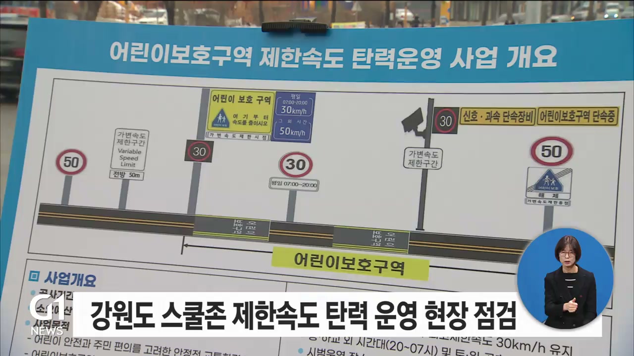 강원도가 규제혁신 1호로 추진 중인 스쿨존 제한속도 탄력 운영 시범 사업을 앞두고 현장 점검을 벌였습니다.