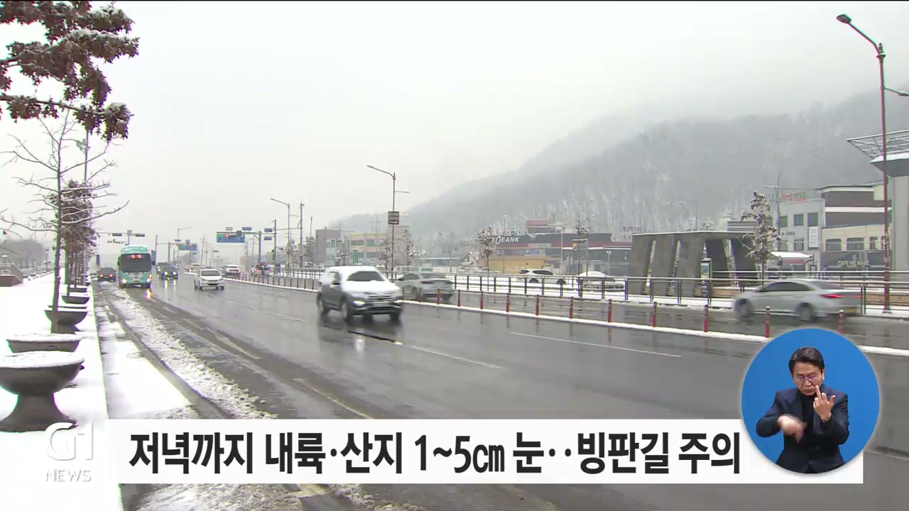 저녁까지 내륙·산지 1~5cm 눈..빙판길 주의
