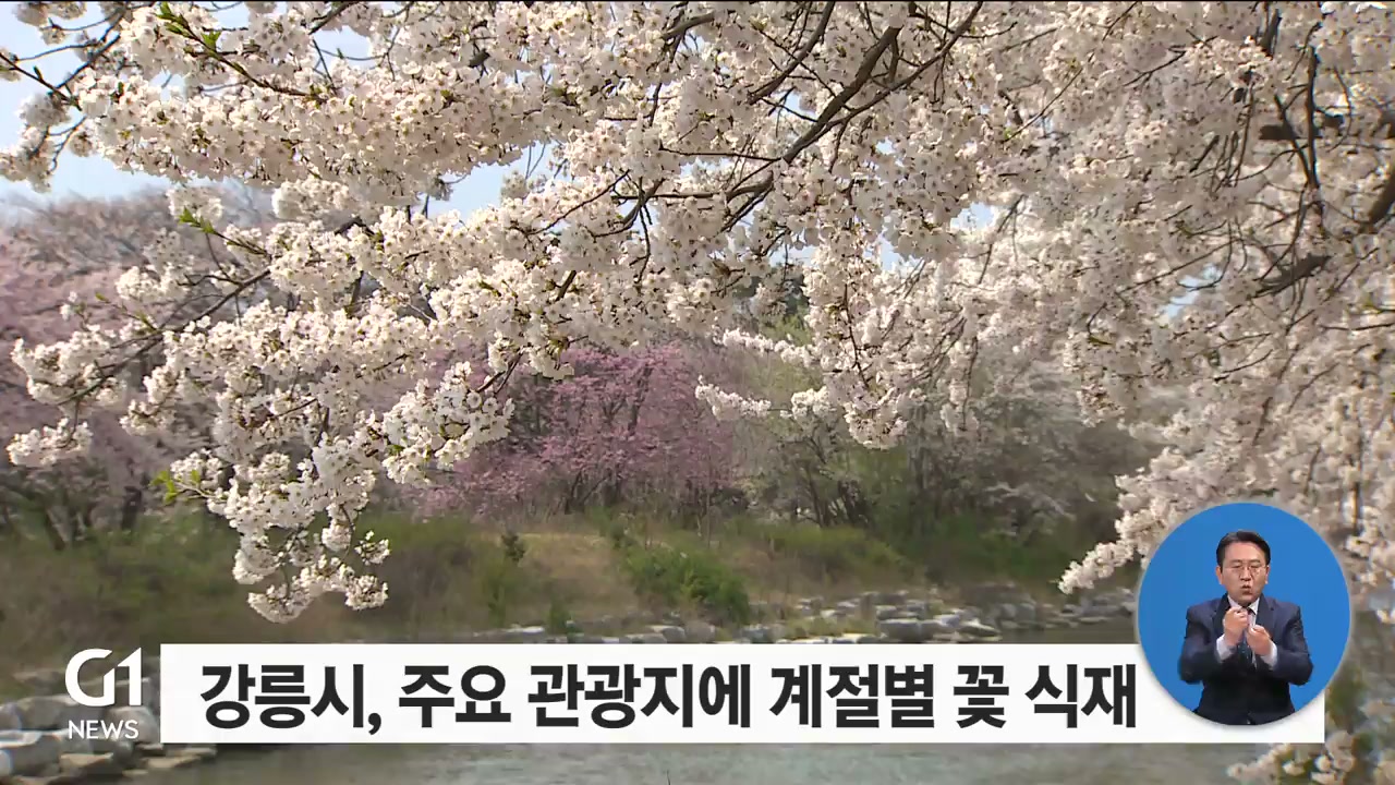강릉시는 주요 관광지에 벚나무와 목백일홍 등의 꽃을 심는 사업을 벌입니다.