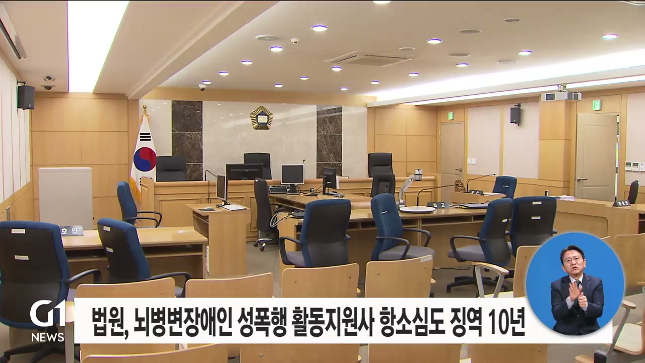 서울고법 춘천재판부는 성폭력범죄의 처벌 등에 관한 특례법상 장애인 유사성행위와 강제추행 등의 혐의로 기소된 50살 A씨에게 원심과 같은 징역 10년을 선고했습니다.