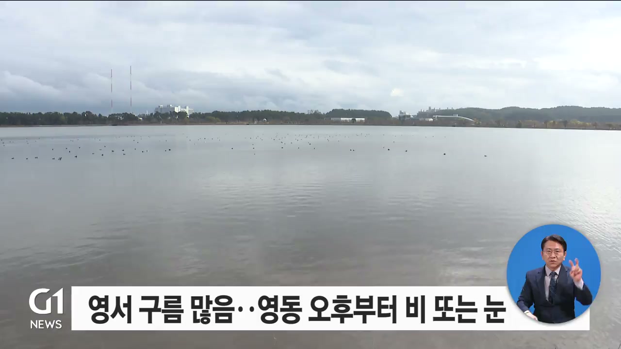 오늘 영서지역은 대체로 구름이 많이 끼겠고, 영동지역은 오후부터 비나 눈이 내리는 곳이 있겠습니다.
