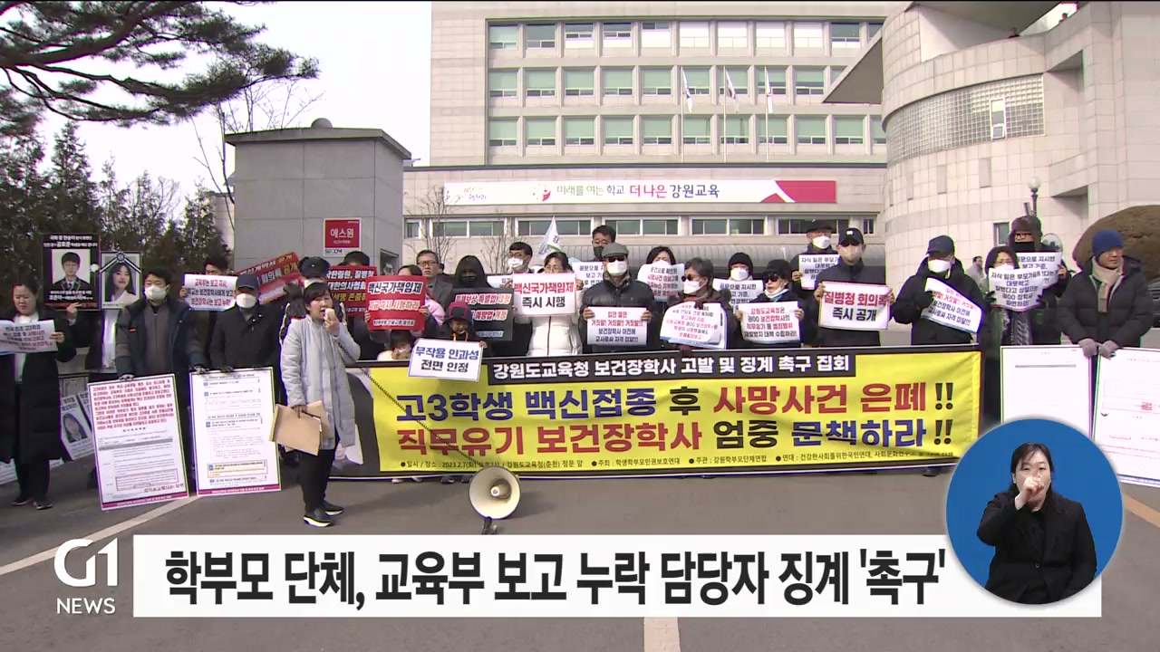 강원학부모단체연합 등 29개 학부모단체와 시민사회단체와 연대한 이들은 기자회견에서 "교육부 보고 요청이 있었음에도 고3 학생 백신 접종 후 전국 최초로 발생한 학생사망 사건을 교육부에 보고하지 않은 것은 은폐한 것과 다름 없다"며,