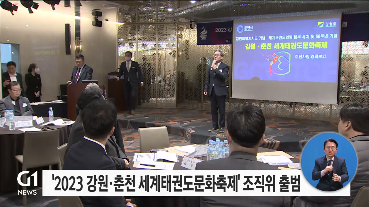 '2023 강원·춘천 세계태권도문화축제' 조직위원회 출범식이 어제(9일) 춘천 잭슨나인스호텔에서 열렸습니다.