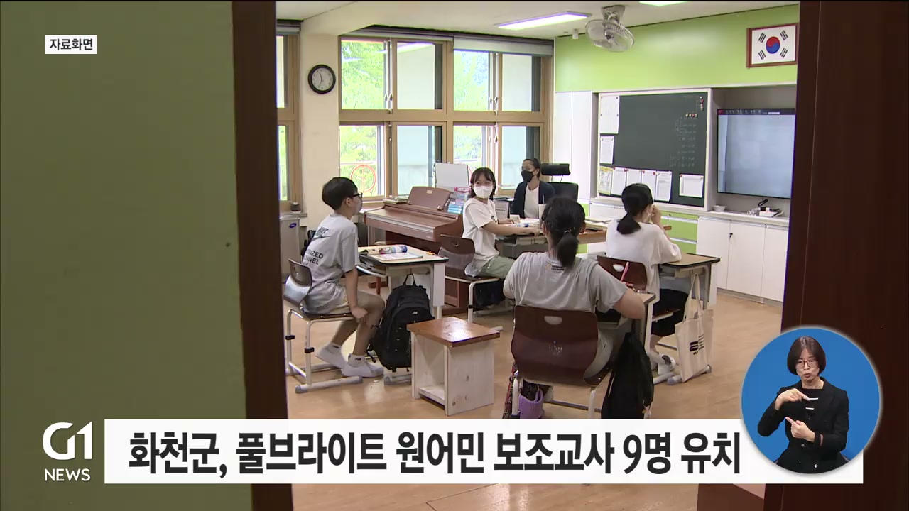 화천군이 다음달부터 12월까지 지역 학교와 자체 운영하는 외국어 아카데미 등에 한미교육위원단 풀브라이트 원어민 보조교사 9명을 배치합니다.