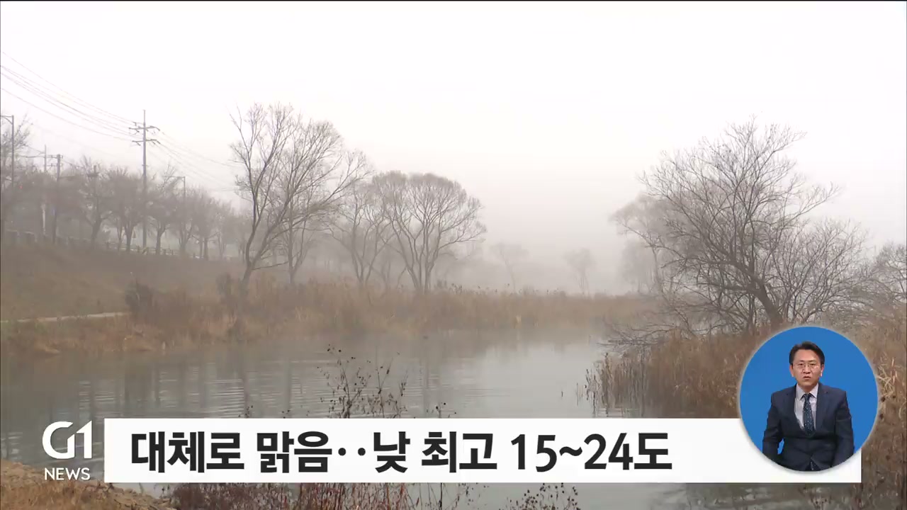 낮 최고기온은 영서지역이 영상 21도에서 24도, 영동지역은 영상 15도에서 21도의 분포를 보이겠습니다.