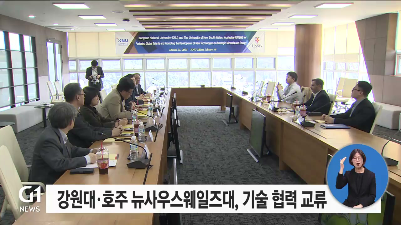 강원대학교 링크 3.0 사업단이 어제(21일) 교내 미래도서관에서 호주 뉴사우스웨일즈 대학과 '한국 호주간 국가핵심광물 기술 협력을 위한 교류회'를 가졌습니다.