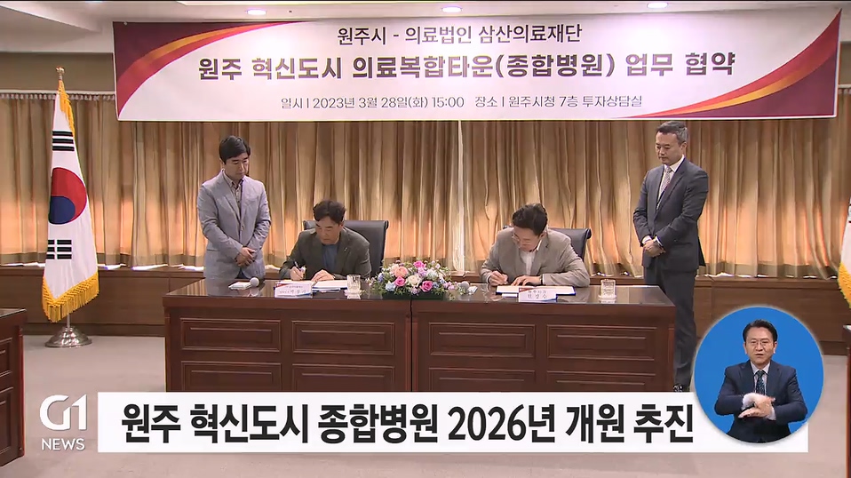 원주시는 어제(28일) 시청 투자상담실에서 삼산의료재단과 업무협약을 맺고, 종합병원 건립에 따른 각종 인허가 절차 등 적극 협력을 약속했습니다.