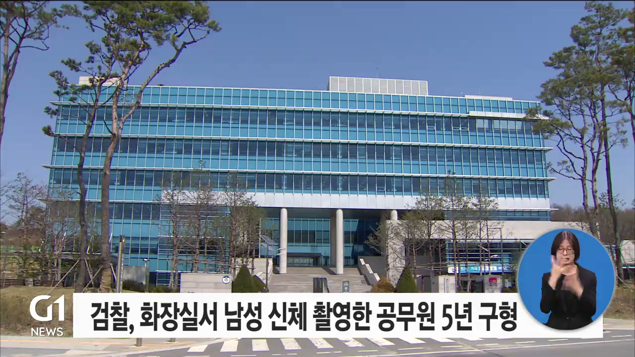 화장실에서 다른 남성의 신체를 수십 차례 촬영한 혐의로 기소된 공무원에게 검찰이 징역 5년을 구형했습니다.