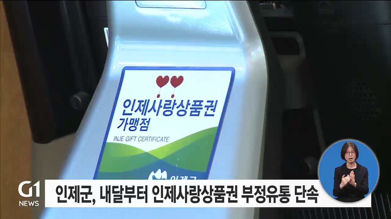 인제군이 다음 달 3일부터 4주간 인제사랑상품권 부정유통 방지를 위한 일제 단속에 나섭니다.