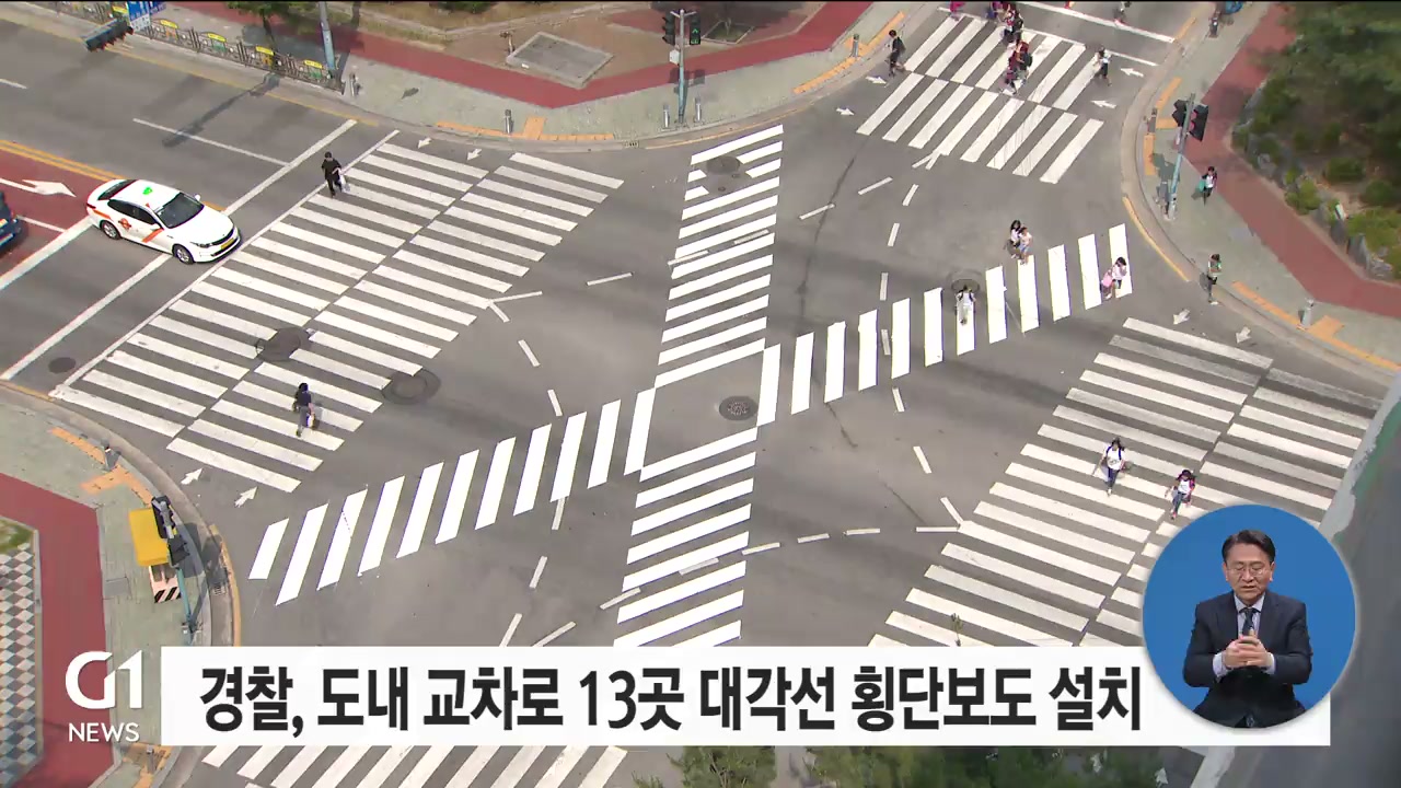 경찰, 도내 교차로 13곳에 대각선 횡단보도 설치
