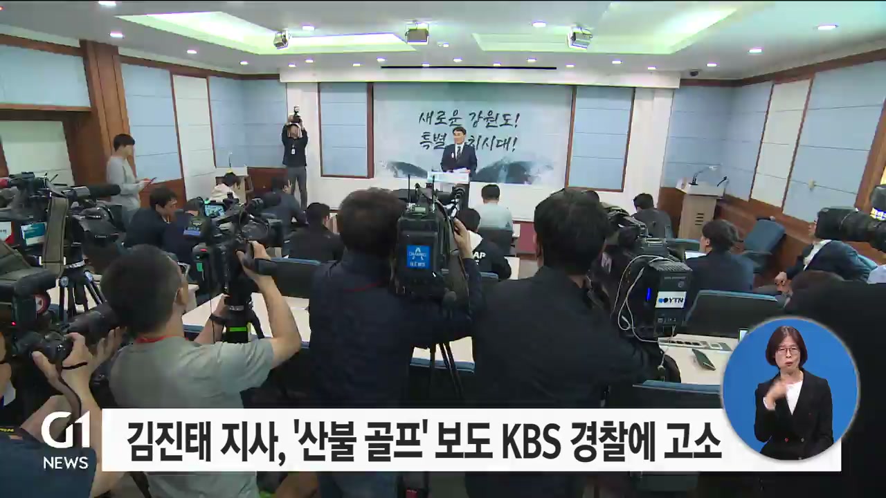 김진태 강원도지사가 '산불 골프' 보도와 관련해 KBS를 허위사실과 명예훼손 혐의로 경찰에 고소했습니다.