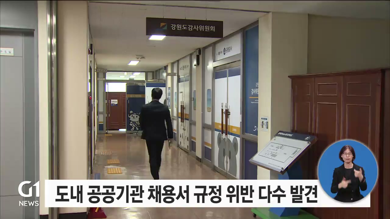 강원도 감사위원회는 시·군 감사관실과 함께 지난해 5월부터 11월까지 70개 공공기관을 대상으로 실시한 채용실태 조사에서 모두 60건의 규정 위반 또는 부적정한 사례를 발견해 조치했다고 밝혔습니다.