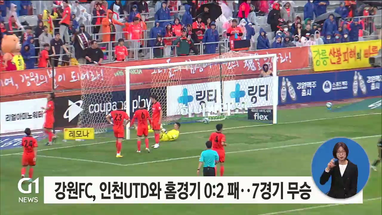 강원FC는 어제(16일) 춘천송암스포츠타운에서 열린 '하나원큐 K리그1 2023' 7라운드 인천유나이티드와의 홈경기에서, 전·후반 각각 1골씩을 내주며 0:2로 완패했습니다.