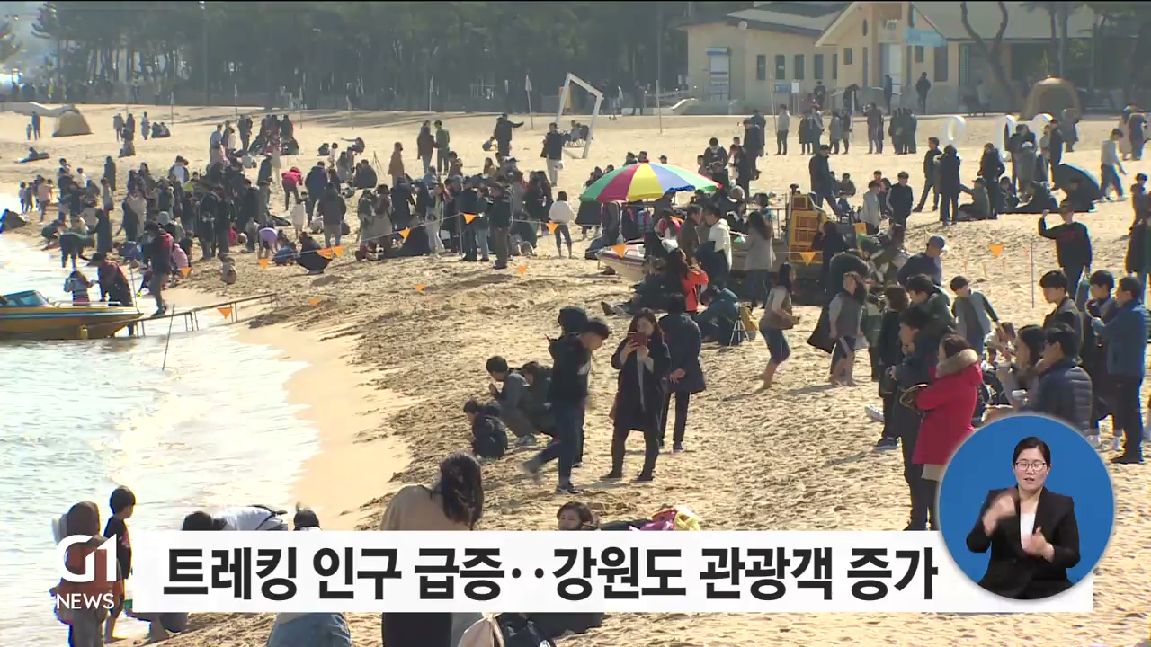 강원도관광재단은 바다와 산 트레킹이 각광을 받으면서, 지난 한달 1,215만 명이 도를 찾은 것으로 집계됐다고 밝혔습니다.