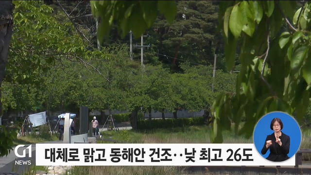 대체로 맑고 동해안 건조..낮 최고 26도