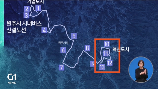 /원주 혁신도시에서 기업도시로 이어지는 신설 노선은 13개 정류장에 정차합니다.