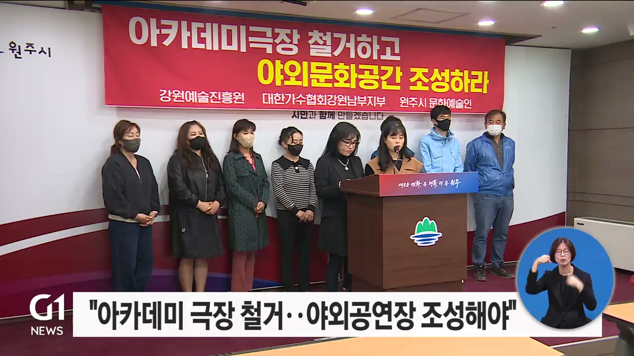 사단법인 강원예술진흥원과 대한가수협회강원지회, 원주시문화예술인 등은 어제(2일) 기자회견을 열고 "아카데미 극장을 철거하고 야외공연장을 조성할 것"을 촉구했습니다.