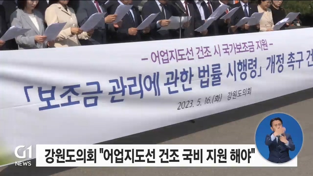 강원도의회가 어업지도선 건조 시 국가 예산을 지원받을 수 있도록 하는 내용의 '보조금 관리에 관한 법률 시행령' 개정을 촉구하고 나섰습니다.