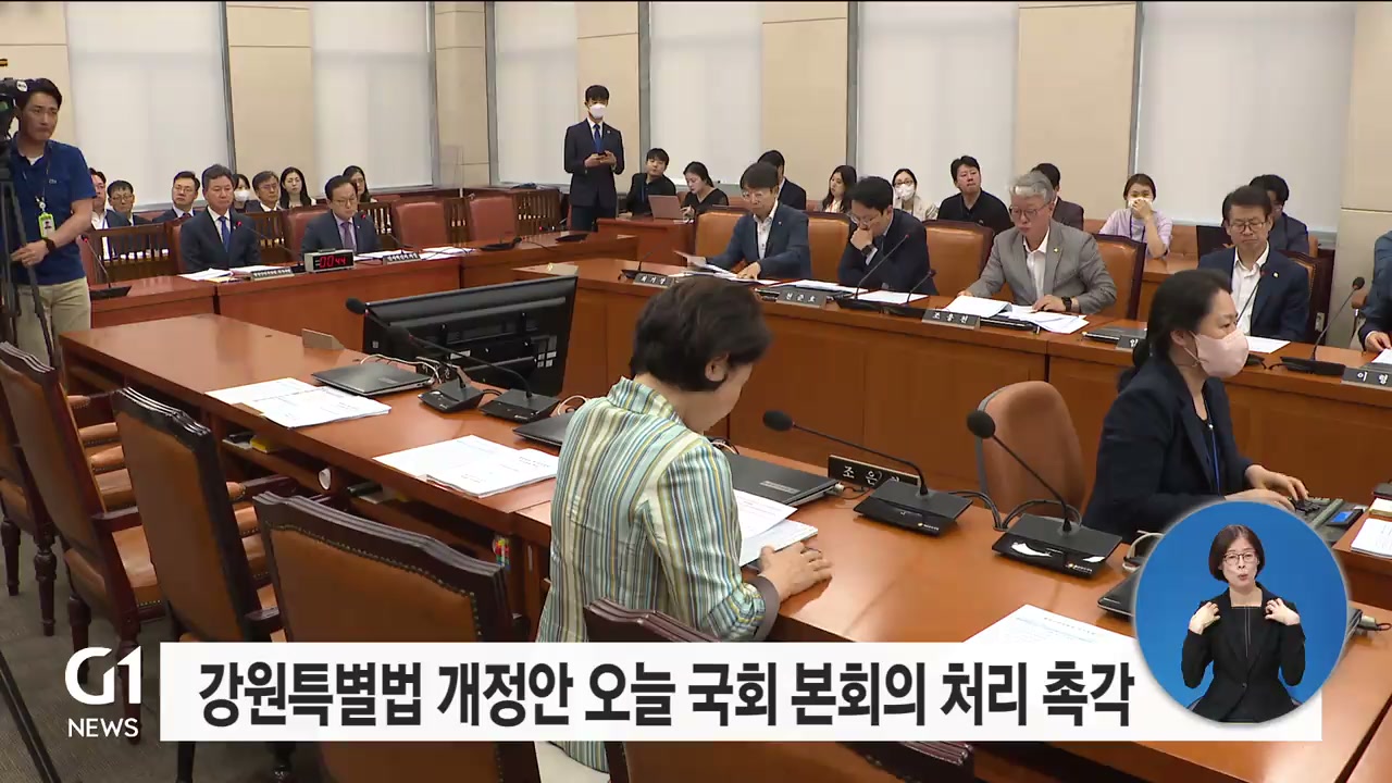 여야의 극적 합의로 어제 행정안전위원회 법안 심사 소위와 전체회의를 통과한 강원특별자치도법 개정안이 오늘 국회 본회의에서도 처리될지 관심이 모아집니다.