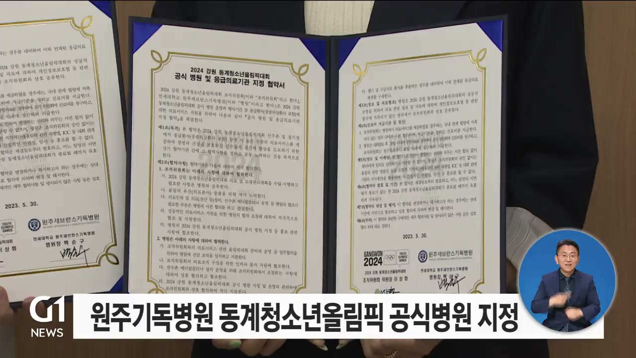 원주세브란스기독병원과 강원 동계청소년올림픽대회 조직위원회는 어제(30일) 업무협약을 맺고 원주기독병원을 올림픽 공식병원으로 지정했습니다.
