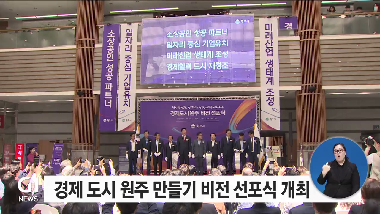 강원특별자치도 출범을 기념하고 경제 도시 원주를 만들기 위한 비전 선포식이 어제(31일) 원주시청에서 열렸습니다.