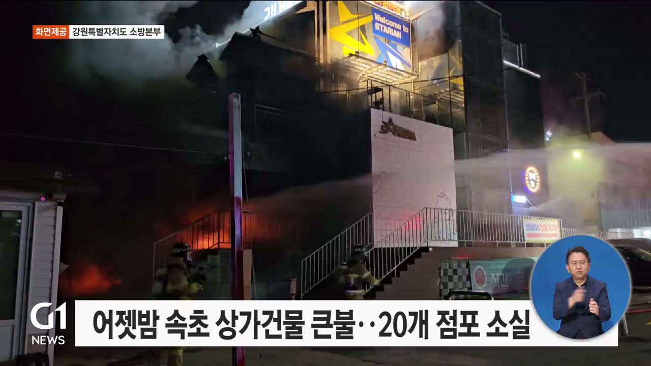 어젯밤 속초 상가 건물 큰불..20개 점포 소실