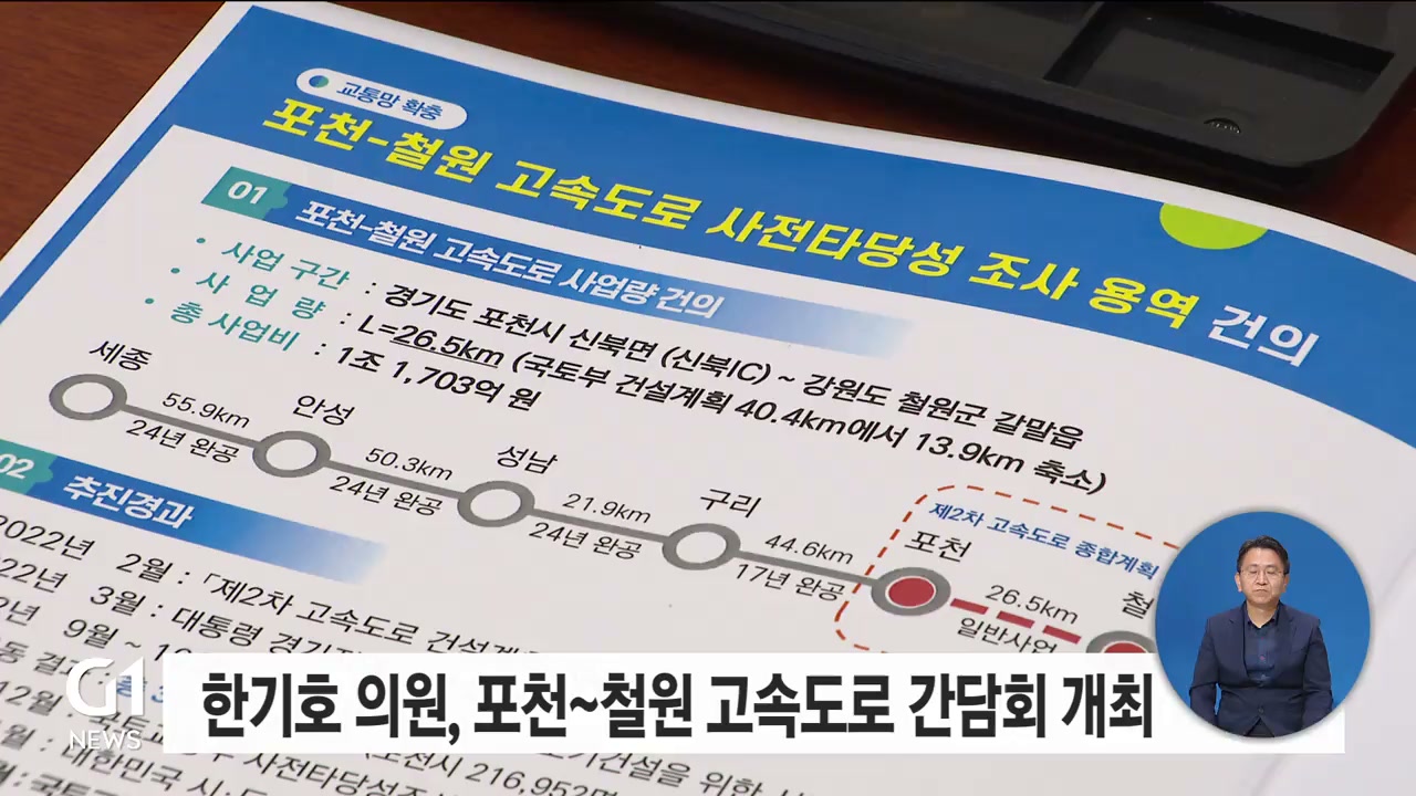 한 의원은 "포천~철원 고속도로는 윤석열 대통령의 공약이자 강원도와 경기 북부지역의 숙원사업인 만큼, 조기 착공을 위해 다 같이 힘을 모으자"고 말했습니다.