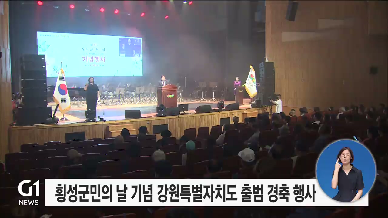 횡성군 발전에 기여한 유공자 포상과 건중년 합창단의 횡성의 노래 합창, 강원특별자치도 출범 축하 레이저쇼와 문화 공연 등이 진행됐습니다.