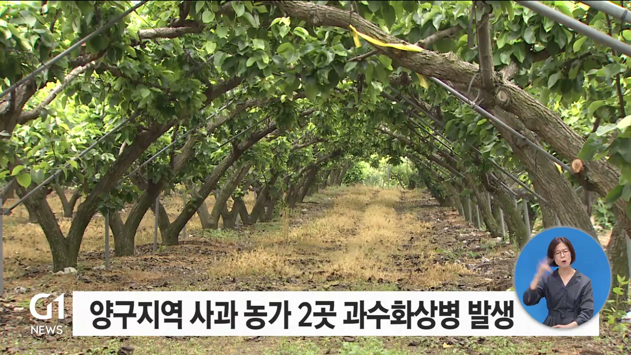 농촌진흥청은 양구 해안면의 사과 과수원 2곳에서 농장주의 의심 신고를 받고 확인한 결과, 0.8㏊ 규모에서 과수화상병이 나타났다고 밝혔습니다.