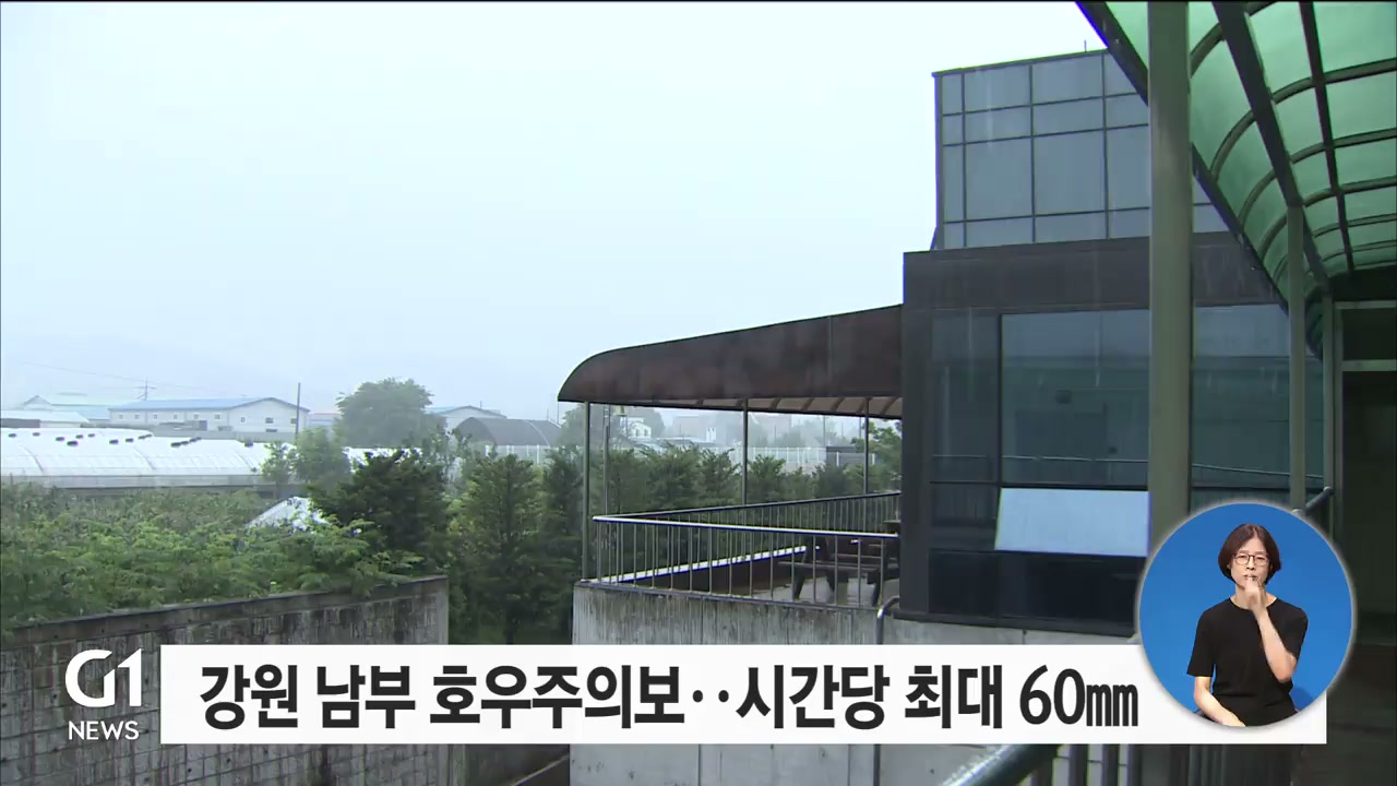 오늘 원주를 비롯한 강원 남부지역에 호우주의보가 내려진 가운데, 시간당 최대 60mm에 강한 비가 쏟아지겠습니다.