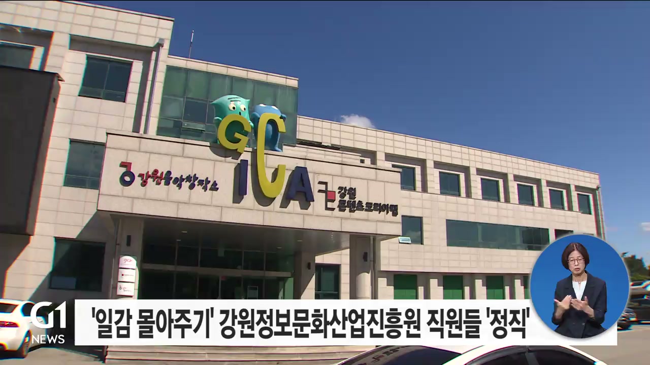춘천시에 따르면 진흥원은 어제(20일) 내부 인사위원회를 열고, 징계위에 회부 된 간부 A씨 등 3명에 대해 '정직 1개월' 처분을 내렸다고 밝혔습니다.