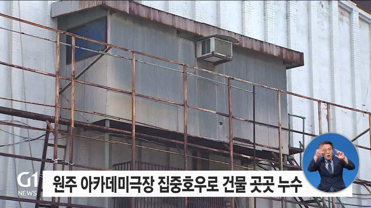 건물 안전성 평가 D 등급을 받은 원주 아카데미 극장이 최근 집중호우로 곳곳에서 누수 등이 발생한 것으로 나타났습니다.