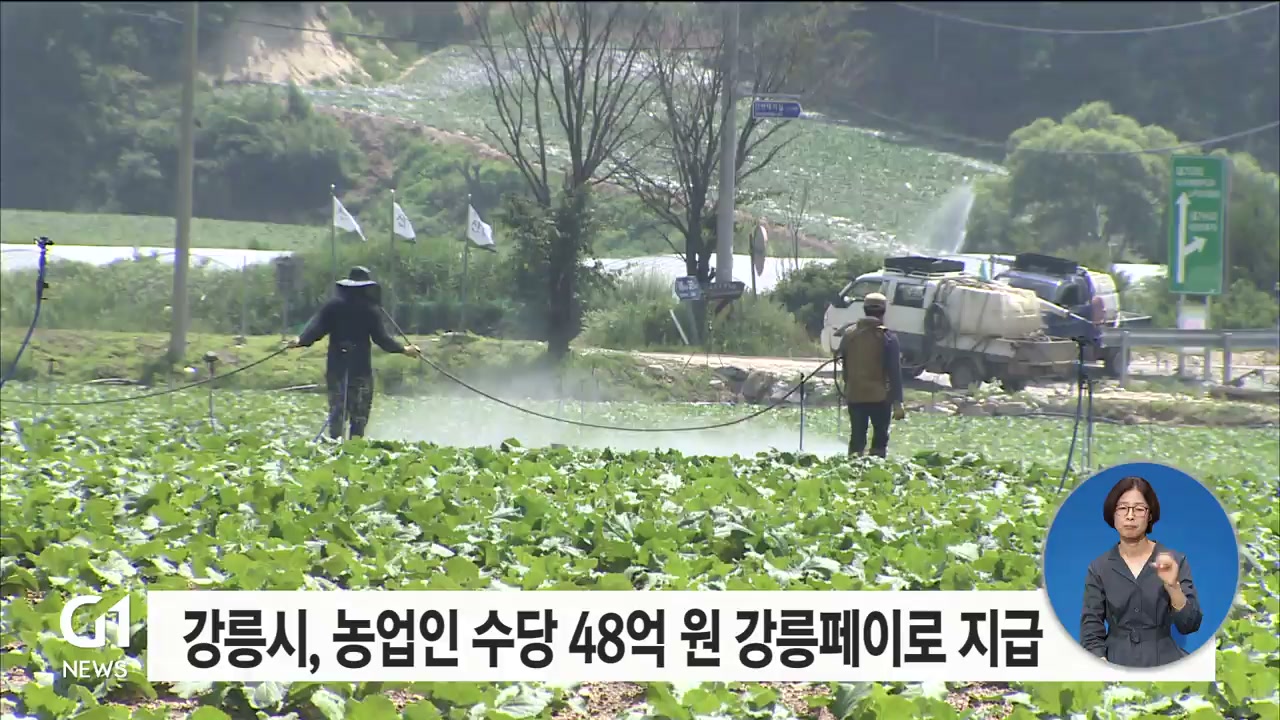 강릉시는 지역 농업인 6,905명에게 1인당 70만 원씩, 모두 48억 3,350만 원을 강릉페이로 지급한다고 밝혔습니다.