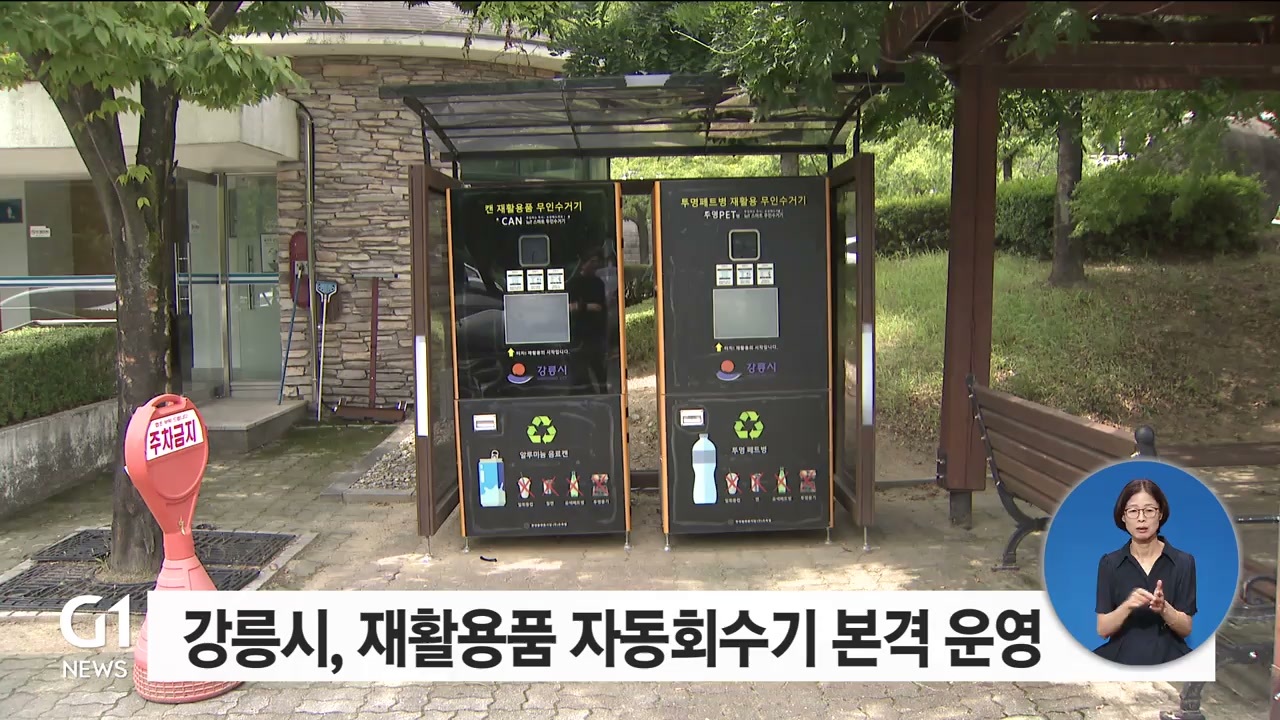강릉시가 분리 배출 활성화와 자원 순환에 대한 시민 참여 분위기 조성을 위해 재활용품 자동회수기를 설치했습니다.