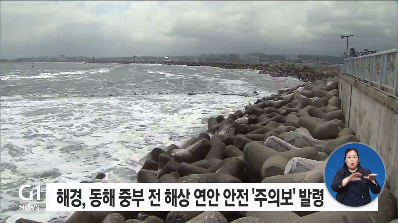 제6호 태풍 '카눈' 북상에 따라 동해 중부 전해상에 연안안전사고 위험예보 주의보가 발령됐습니다.