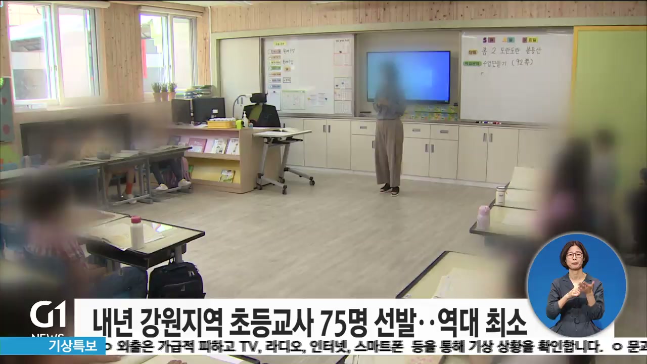 강원특별자치도 교육청은 내년 강원지역에 초등교사 75명을 선발할 예정이라고 밝혔습니다.