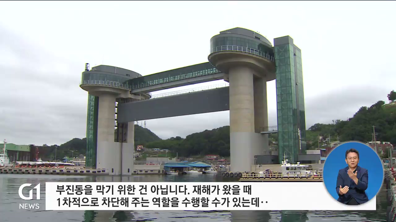 "항만이나 어항구역에서의 심각한 문제는 (항내에서 발생하는 파도인) 부진동인데, 부진동을 막기 위한 건 아닙니다. 재해가 왔을 때 1차적으로 차단해주는 역할을 수행할 수가 있는데.."